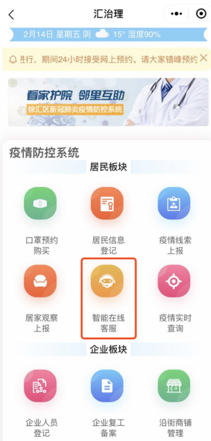 微信小程序中搜索“汇治理”,在智能在线客服中就可以与防疫机器人对话。顺利获得实时语音、文本互动,做到隔离期间的身体状况上报、疾控知识咨询、重点群体排查等防控措施。