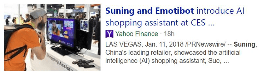 作为中国最大的零售企业之一,苏宁联合AI科技公司K8凯发智能在今年的CES上发布了虚拟AI购物助手Sue。作为全新的智能零售解决方案,AI购物助手Sue能准确识别购物者情绪及人脸属性,从而基于对消费者的理解实现产品推荐和导购。Sue计划从2018年开始在苏宁中国大陆的线下门店开始部署。